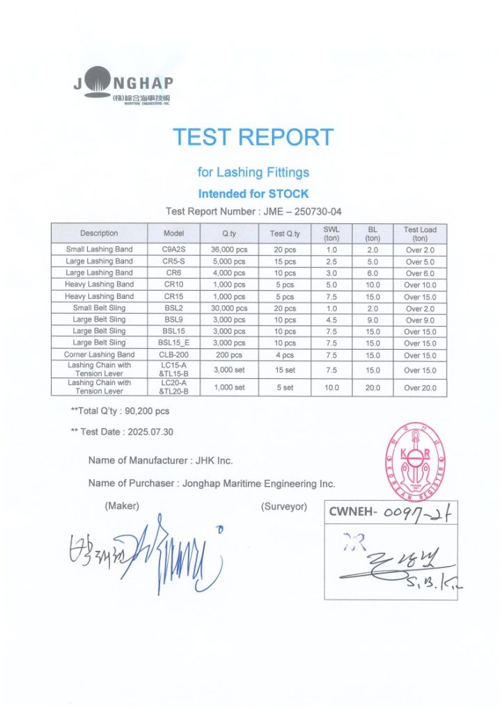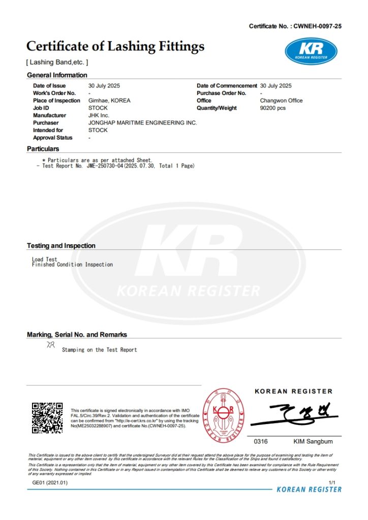 인증서▣ ISO 9001 / 14001 / 45001 ▣ Certificate for Car Lashing Fittings ▣ Certificate for MET2026 문의사항질문이 있으시면 저희에게 연락해 주십시오. 문의하기